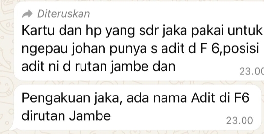 “Kartu dan HP itu saya pakai untuk nge-pau Johan; ponsel dipinjam dari Adit di F6, yang sekarang masih di Rutan Jambe,” ungkap Jakaria dalam berita acara pemeriksaan.